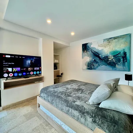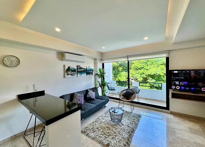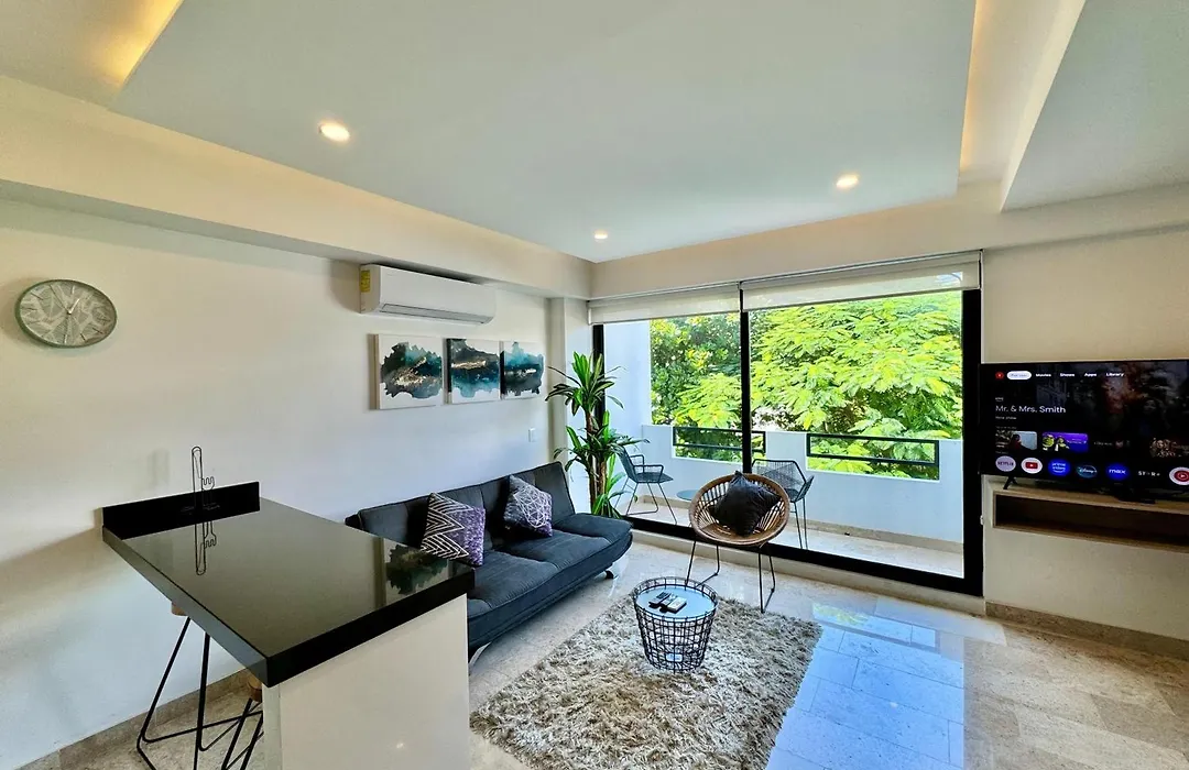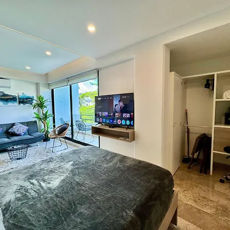 Your Home Away From Home In Playa Del Carmen! biedt een balkon die zijn ingericht met een bureau, samen met moderne voorzieningen zoals een flatscreen TV met satellietzenders. De 1-badkamer accommodatie is uitgerust met een badkamer met een haardroger en handdoeken.